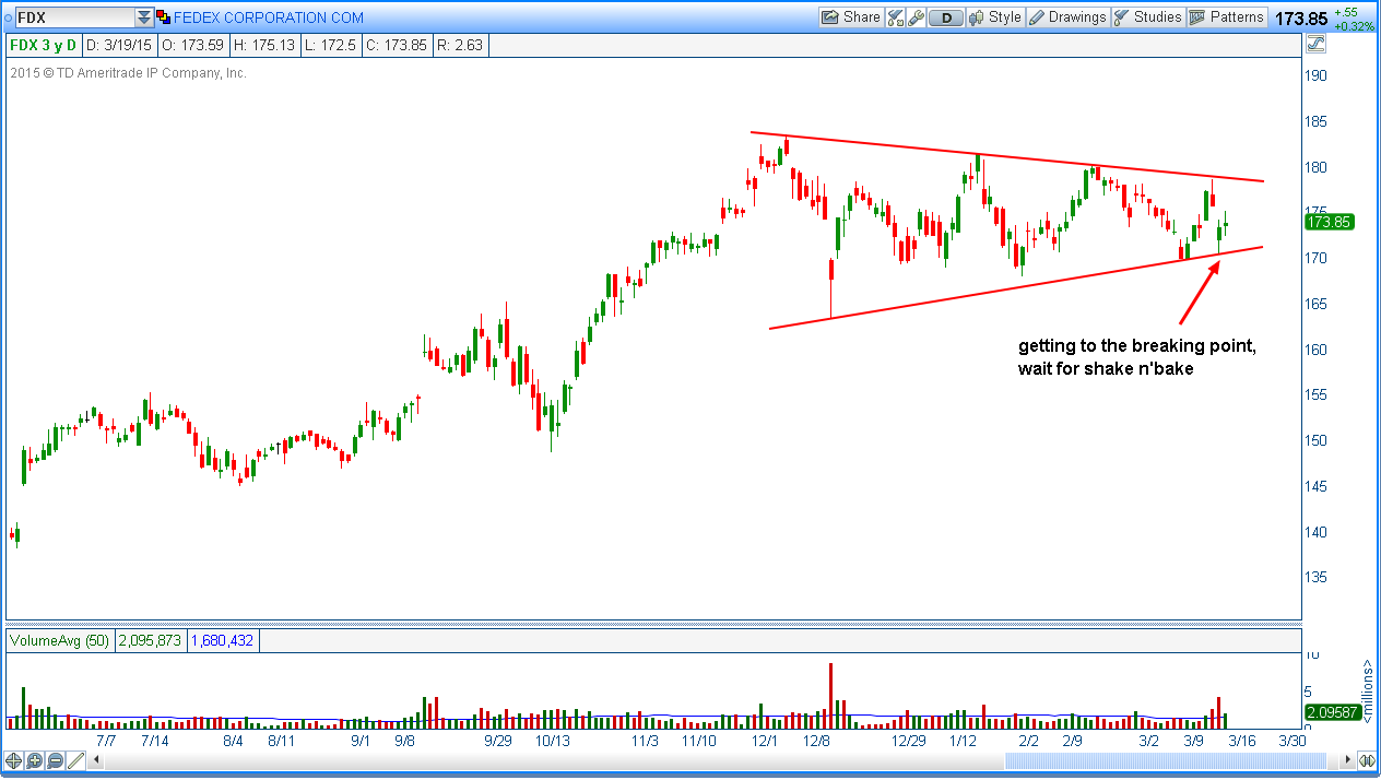 FDX pinching toward the apex of this wedge (triangle). Wait for the breakout for directional clues.