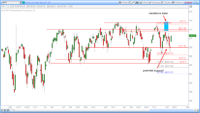In term of the SPY, the level near 212 is the next potential resistance or target level, specifically the 211.63 and 211.99. The support levels are 207.95, 206.32 and 204.40 in that following order.